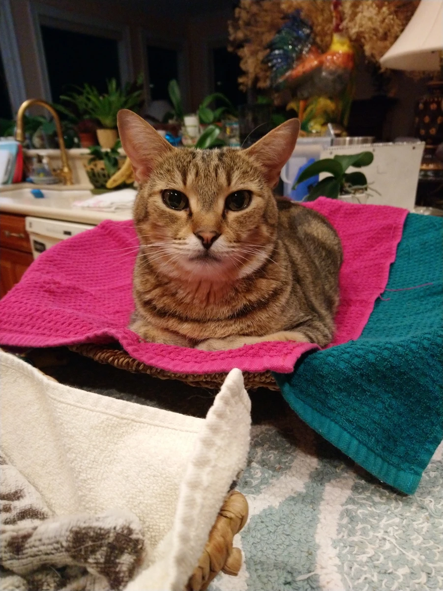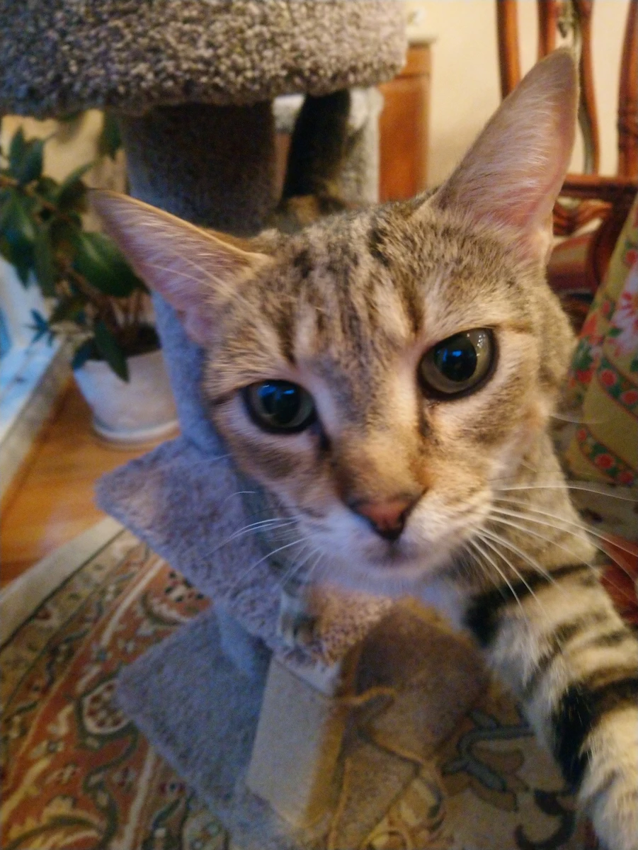 Her little cat, significantly less so.